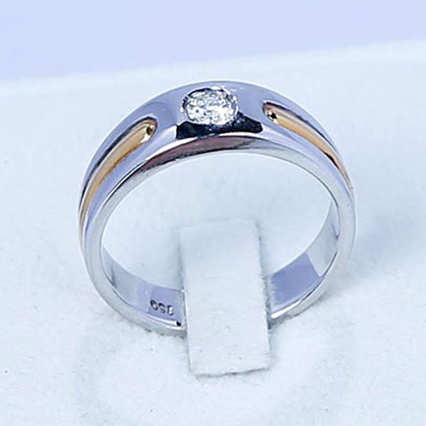 18K White Gold and 22K Yellow Gold Ring Set with 1 Natural Diamond