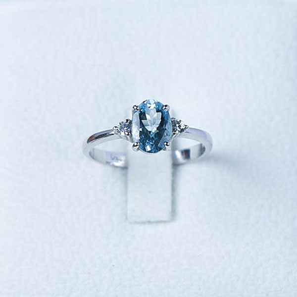 18K White Gold Ring Set with 1 Natural Aquamarine and 2 Natural White Sapphires
