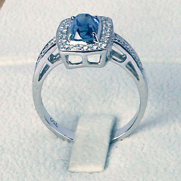 18K White Gold Ring Set with 1 Natural Blue Sapphire and Natural Diamonds