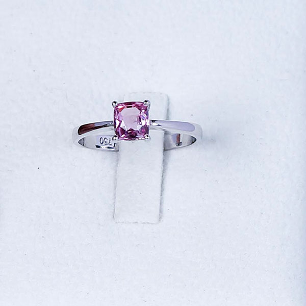 18K White Gold Ring Set with 1 Natural Padparadscha