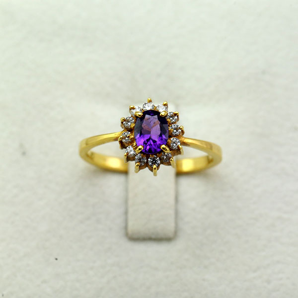 22K Gold Ring Set with 1 Natural Amethyst And Zirconias