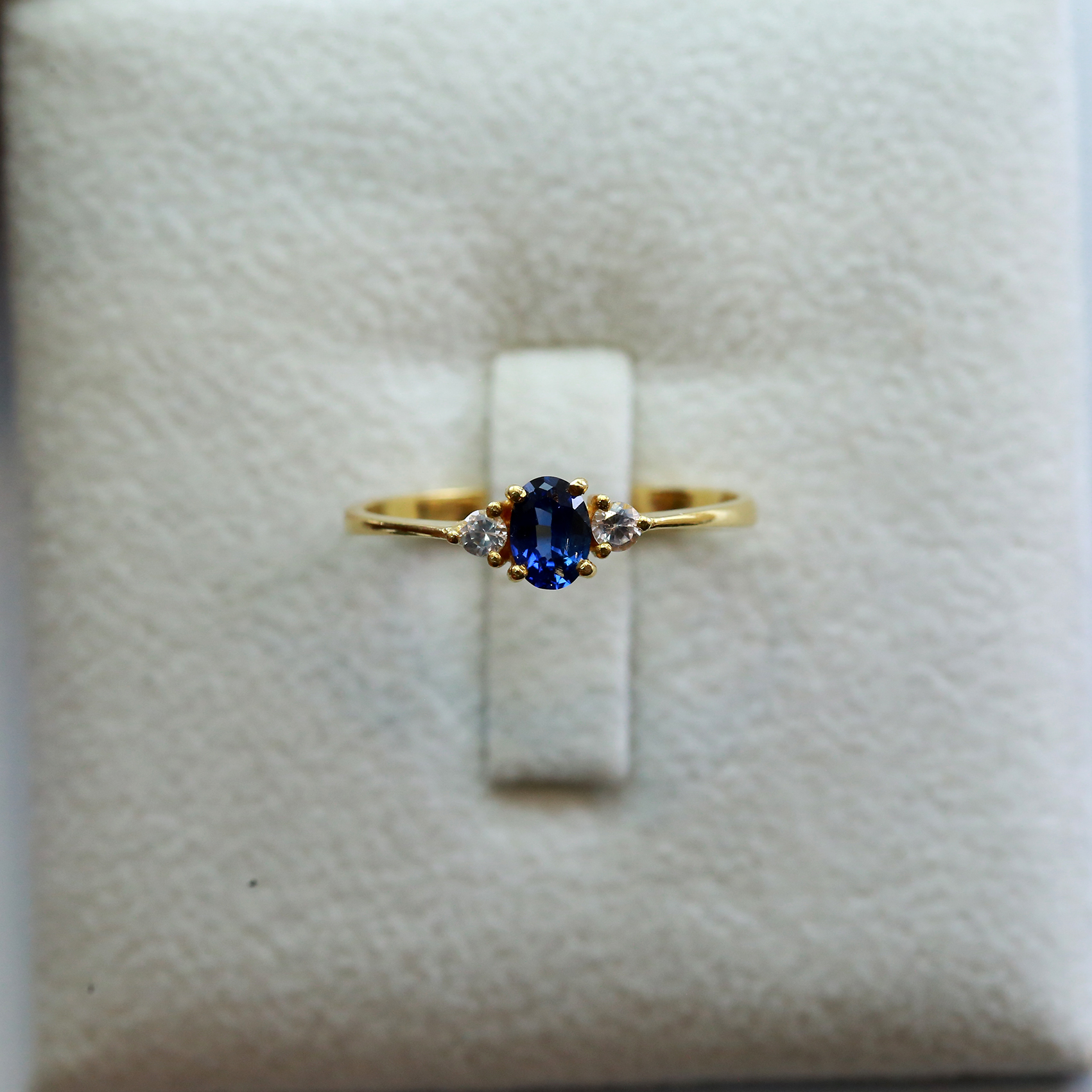 22K Gold Ring Set with 1 Natural Blue Sapphire and 2 Natural White Sapphires