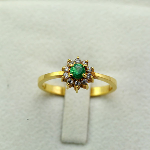 22K Gold Ring Set with 1 Natural Emerald and Natural White Sapphires