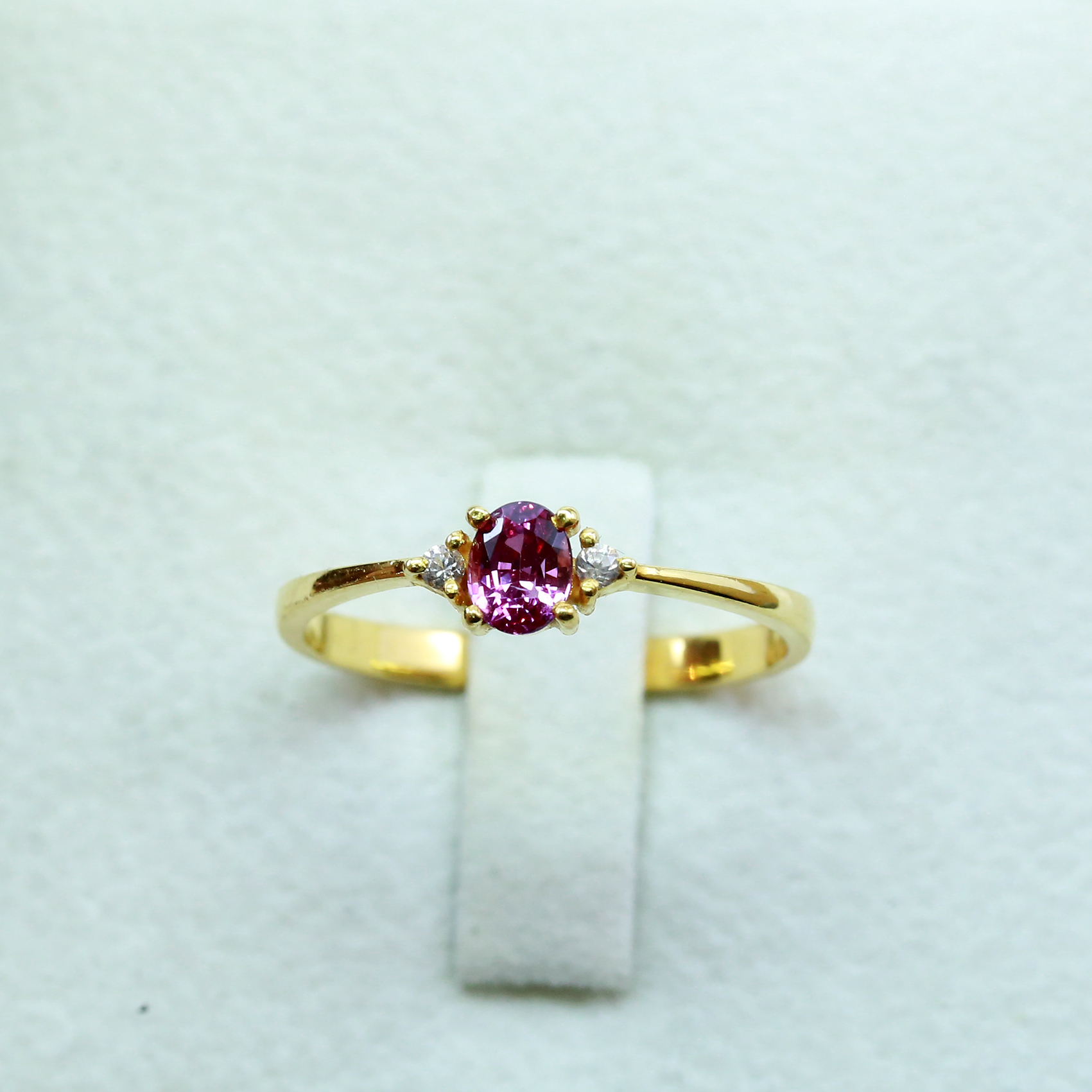 22K Gold Ring Set with 1 Natural Pink Sapphire and 2 Natural White Sapphires