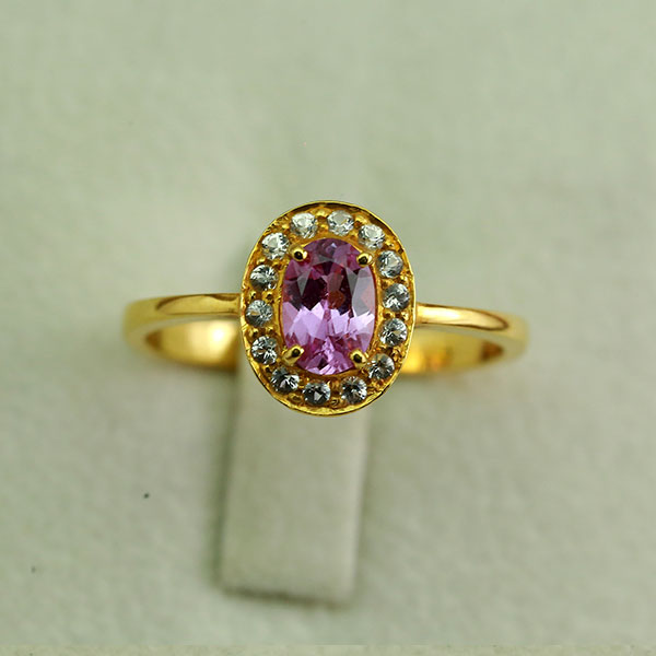22K Gold Ring Set with 1 Natural Pink Sapphire and Natural White Sapphires