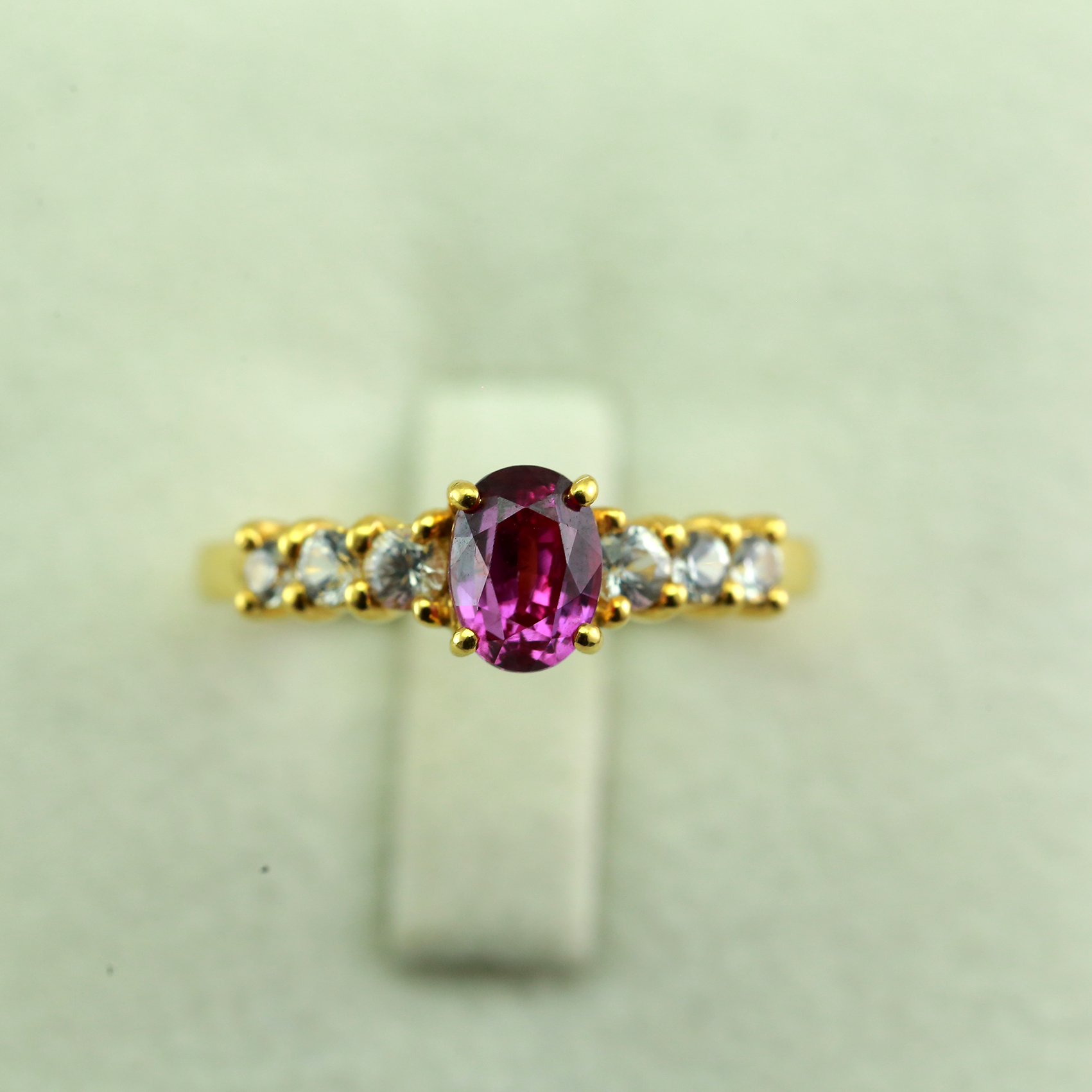 22K Gold Ring Set with 1 Natural Pink Sapphire and Natural White Sapphires