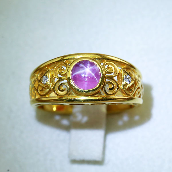 22K Gold Ring Set with 1 Natural Star Ruby and 2 Natural Diamonds