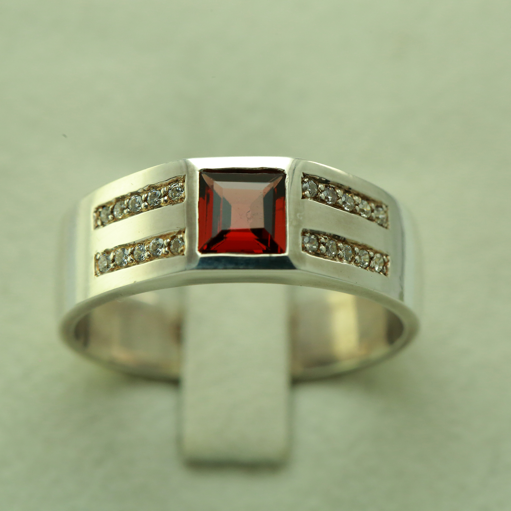 Silver Ring Set with 1 Natural Garnet and Zirconias