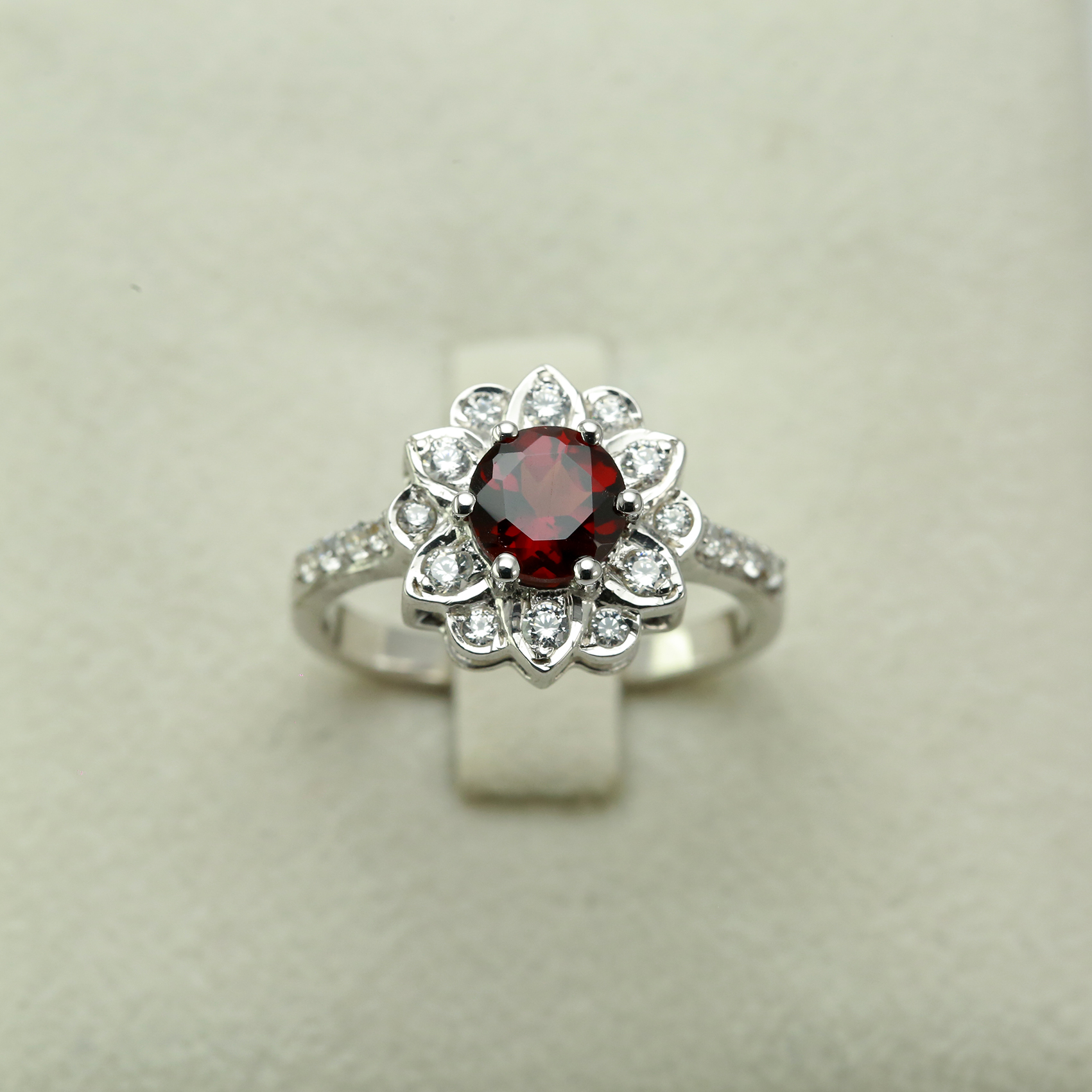 Silver Ring Set with Natural Garnet and Zirconias