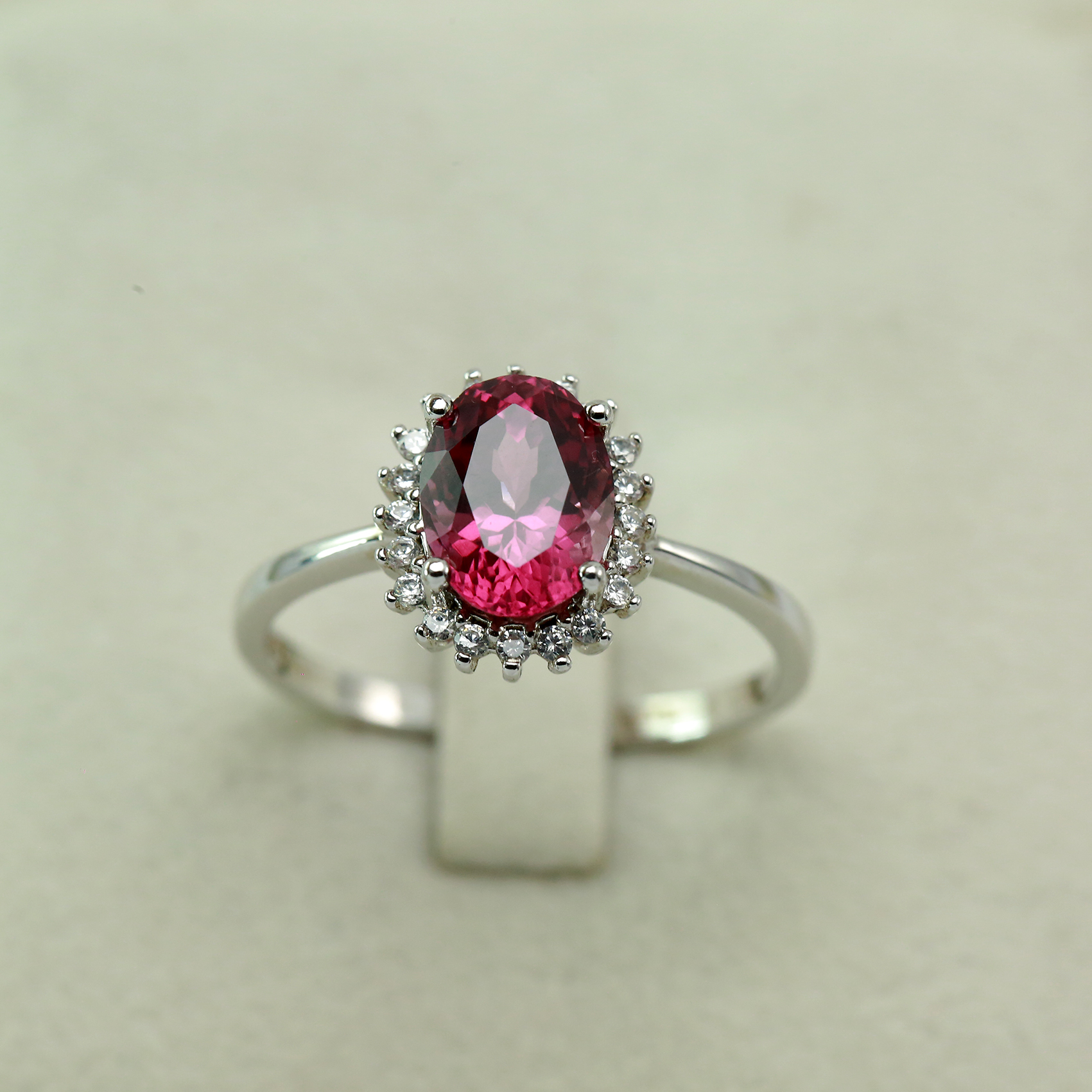 Silver Ring Set with Natural Garnet and Zirconias